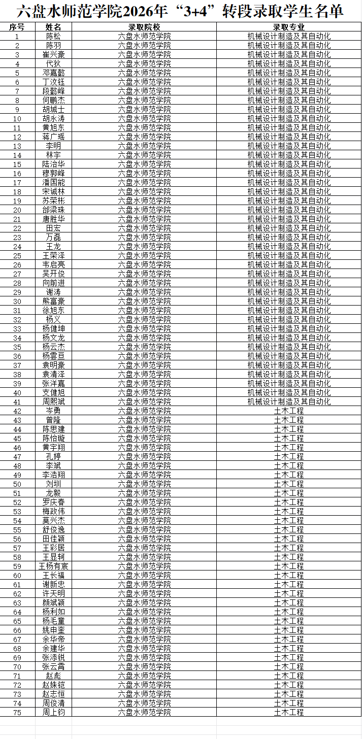 点击下载附件:六盘水师范学院2026年“3+4”转段录取学生名单.xlsx