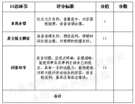 六盘水师范学院“专升本”英语专业口语考试评分标准